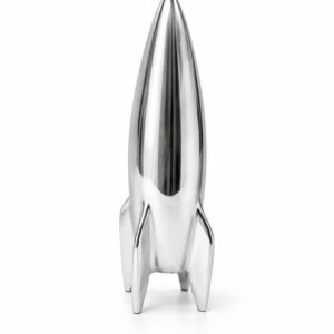 A celebration of human innovation and the dream of space travel our Rocket Ship is hand moulded from polished aluminium. A sculpture that captures the sleek lines and futuristic optimism of the rocket age — a timeless symbol of ambition, creativity, and adventure.